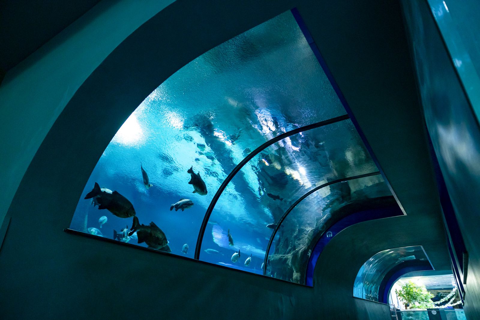 Полумрак, голубая подсветка воды, медленно проплывающие скаты и акулы — атмосфера почти медитативная. Прогулка среди огромных аквариумов создаёт ощущение погружения в другой мир.