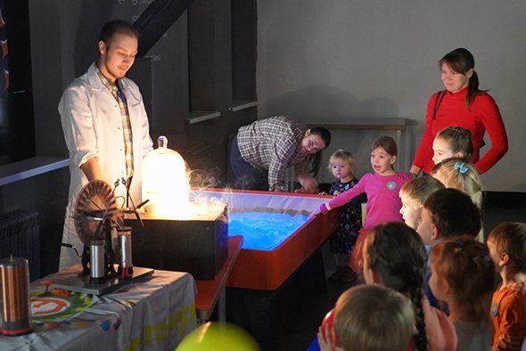 Зимой музей проводит праздничные научные шоу: крио-эффекты, ледяные эксперименты, необычные химические реакции.